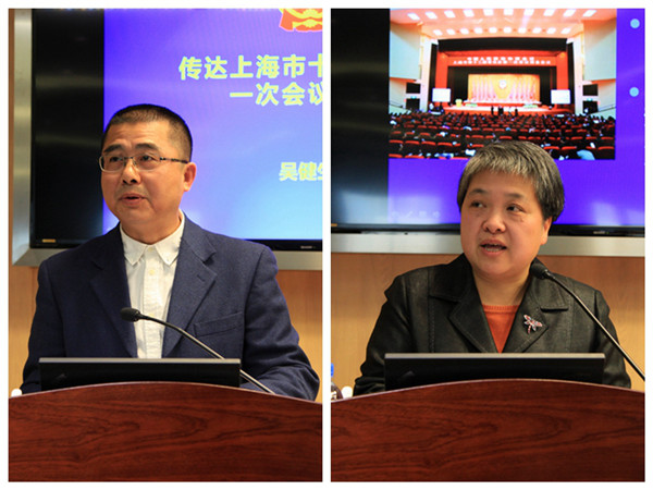 社市委副主委、市人大常委会委员吴健生传达了上海市十五届人大一次会议精神,社市委秘书长、市政协常委朱红传达了政协上海市十三届一次会议精神。
