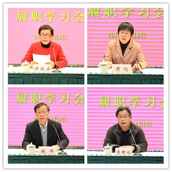 市人大代表、上海岩土工程勘察设计研究院有限公司总工程师许丽萍,市政协常委、市政协提案委员会常务副主任黄鸣,市政协常委、中科院上海微系统与信息技术研究所传感技术国家重点实验室主任、社市委副主委李昕欣作了履职经验报告,全国政协委员、工程院院士、华东理工大学副校长、社市委副主委钱锋作了题为“珍惜荣誉、履行职责,做一名合格的政协委员”的履职辅导报告。