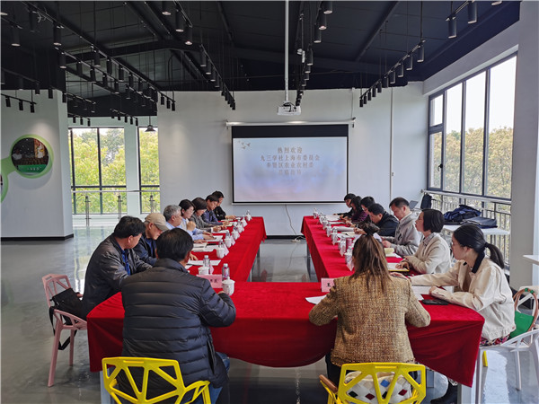 社市委社会服务部一行参观了2023年第十六届上海奉贤菜花节和“青春里”养老社区,随后在庄行镇存古村蜜梨交易中心二楼会议室召开座谈交流会,会议由奉贤区农业农村委党委副书记、副主任罗兰萍主持。社员、奉贤区农业农村委副主任王华,庄行镇党委副书记朱瑾出席会议。