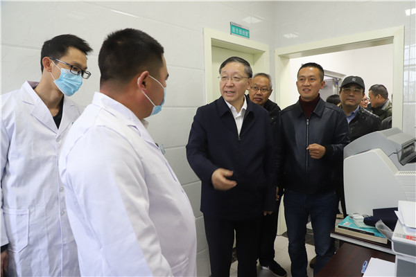 图:钱锋率队在威宁“九三名医服务站”调研卫生帮扶情况