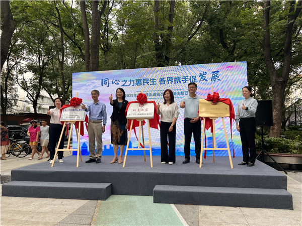 在启动仪式上,李国娟、王寒梅、肖震、刘明明、尹洁等共同为社区委“社员之家”“区政协九三学社界别委员工作室”“九三学社健康咨询基地”揭牌。