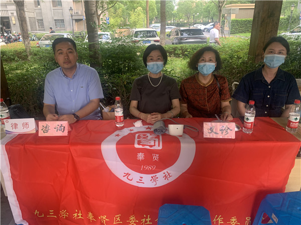 四时花竞巧,九子粽争新。为进一步弘扬中华民族优秀传统文化,营造文明健康、积极向上的良好氛围,6月21日下午,九三学社奉贤区委社会服务工作委员会在奉贤区金海街道文杏社区开展社区志愿服务活动。奉贤区中心医院医生陆赛花、古华医院医生李琤、奉贤区中医院医生潘姣、上海美谷律师事务所律师费嘉彬等四位社员参加活动。