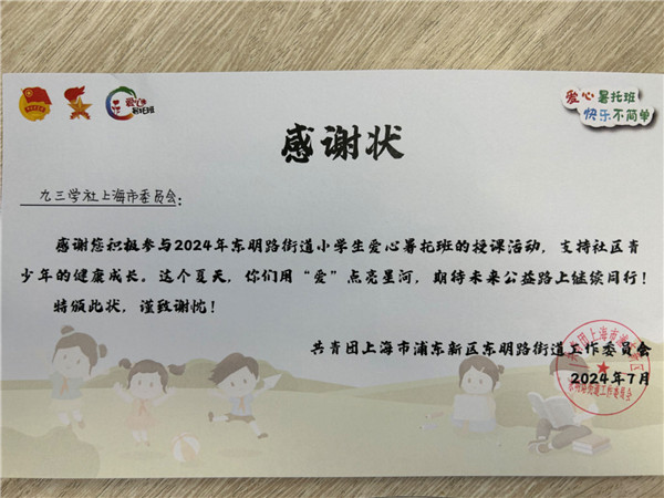 “爱心暑托班,快乐不简单。”2024年暑假,九三学社上海市委科普讲坛再次参与爱心暑托班这一上海市民心工程,先后组织社内外科普专家冒着酷暑走进浦东新区东明路街道、普陀区甘泉路街道和静安区曹家渡街道等社区小学生爱心暑托班,在7月18日到8月16日期间送去7节科普课程,用严谨求实的科学精神和满满的爱心为200名孩子的暑期生活留下科学的光芒。