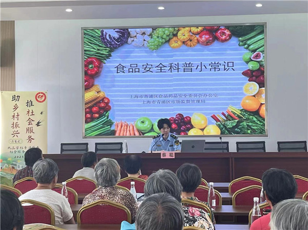 金泽镇王港村属于典型的青西地区,村民都以留守老人为主,省吃俭用,安全卫生意识淡薄。夏季温度高、湿度大,食物易腐败变质,是食源性疾病的高发时段。结合前期结对村居“点单”的食品安全知识需求,专委会第一时间为村里安排了一场科普专题讲座。社员、青浦区市场监督管理局干部蔡聪以《食品安全科普小常识》为题,从购买夏季食品的注意事项、养成良好的用餐习惯、冰箱不是“保险箱”等内容开讲,为村民们上了一堂生动活泼、通俗易懂的食品安全科普课。村民们也进一步提高了对食品安全的警惕性,知晓科学饮食的重要性,讲座取得了良好的效果。