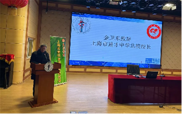 金卫东在开讲仪式上致欢迎辞,他对九三学社市委科普讲坛一直坚持来校巡讲表示诚挚谢意,并希望社市委继续支持、关注进才中学北校的发展。