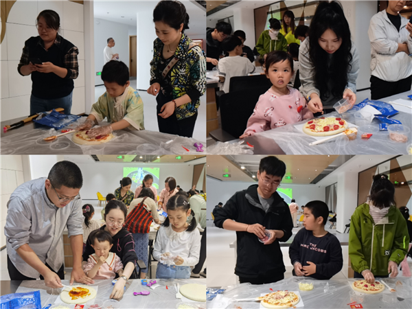 在亲子DIY工坊,孩子们戴上厨师帽,系上围裙、小手揉面团、抹酱汁、撒芝士、摆食材,家长和孩子共同制作披萨,在体验马苏里拉奶酪拉丝乐趣的同时,也增进了亲子间的情感交流。
