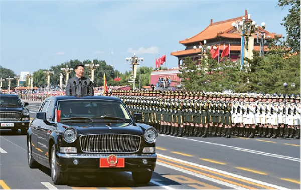 2015年9月3日,纪念中国人民抗日战争暨世界反法西斯战争胜利70周年大会在北京隆重举行。这是中共中央总书记、国家主席、中央军委主席习近平检阅受阅部队。 新华社记者 李学仁/摄
