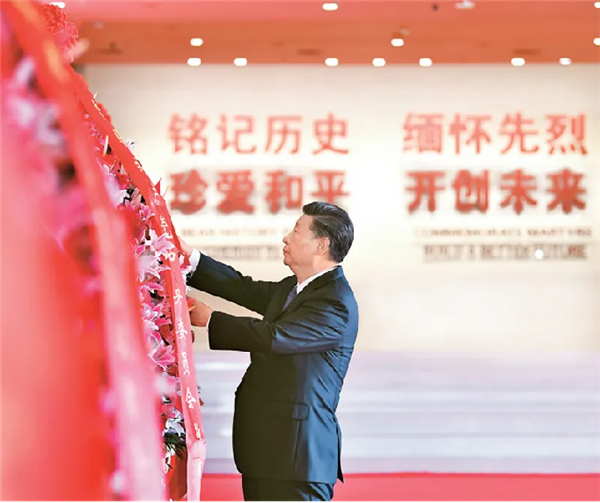 全党全国各族人民要牢记由鲜血和生命铸就的中国人民抗日战争的伟大历史,牢记中国人民为维护民族独立和自由、捍卫祖国主权和尊严建立的伟大功勋,牢记中国人民为世界反法西斯战争胜利作出的伟大贡献,珍视和平、警示未来,坚定不移走和平发展道路,坚定不移维护世界和平,万众一心把中国特色社会主义推向前进。