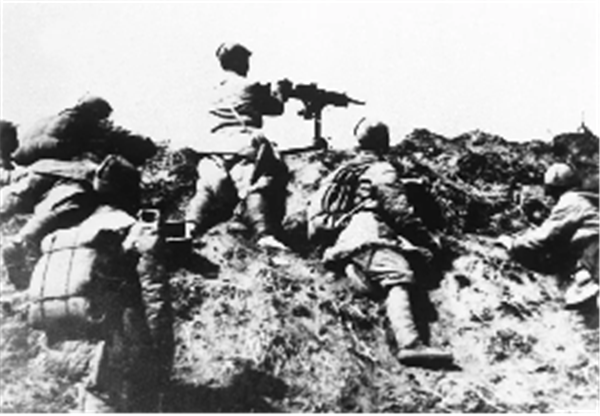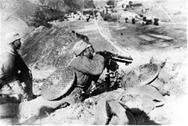 1937年9月25日,中国共产党领导的人民军队取得抗战以来第一个重要胜利——平型关大捷。图为平型关战斗中,一一五师某部的机枪阵地。新华社发(苏静 摄)