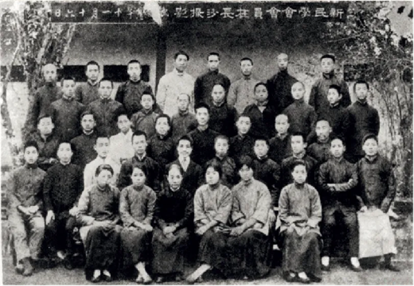 1919年11月新民学会会员在长沙合影,后排右五为毛泽东,前排右二为周南女校学生劳君展