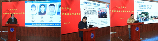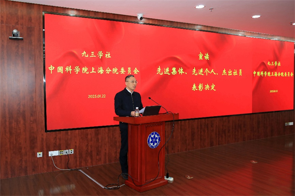 委员会秘书长罗丽庆作九三学社中国科学院上海分院委员会2024年度工作总结及2025年度重点工作部署。会上表彰了2024年度委员会工作表现突出的集体和个人。陈跃军等10位社员被授予“杰出社员”称号;上海技术物理研究所支社等5个集体被授予“组织工作先进集体”称号,陈东英等10位社员被授予“组织工作先进个人”称号;上海微系统与信息技术研究所支社等2个集体被授予“宣传思想工作先进集体”称号,陈良等14位社员被授予“宣传思想工作先进个人”称号;分子植物科学卓越创新中心支社等2个集体被授予“参政议政工作先进集体”称号,常亮等21位社员被授予“参政议政工作先进个人”称号;上海药物研究所支社等4个集体被授予“社会服务先进集体”称号,曹春阳等30位社员被授予“社会服务先进个人”称号。