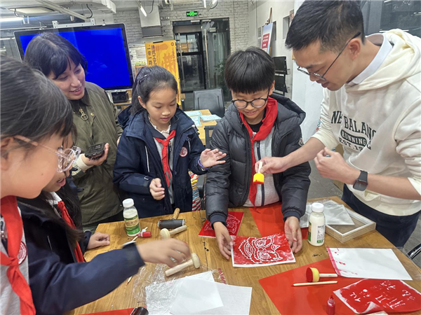 在活动的互动环节,孩子和家长们共同参与了传统拓印体验,使用KT板、刻刀、油墨、宣纸等工具,创作出寓意吉祥的图案和祝福语。活动最后评选出“最佳作品奖”,由秦川老师亲自为获奖者颁发荣誉证书。孩子们表示,他们不仅学到了非遗知识,还希望将这些技艺传播给更多的人。