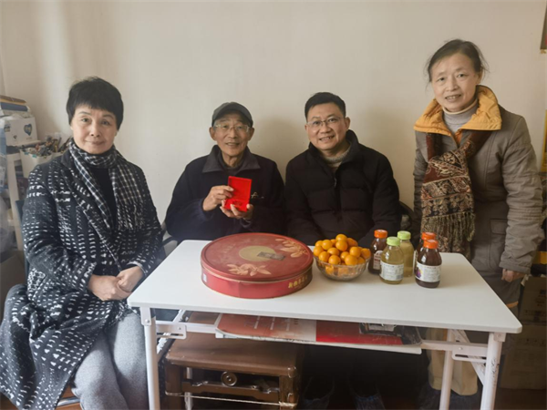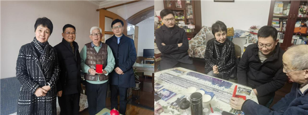 1月23日,九三学社上海大学委员会主委许斌,副主委尹静波、徐韬和主委助理范明辉跨越杨浦、虹口、普陀、黄浦和徐汇5个区,马不停蹄,逐个登门,探望慰问5位耄耋之年老社员,向老人们颁授“在社三十年”纪念章,送上慰问礼包,致以新春祝福。