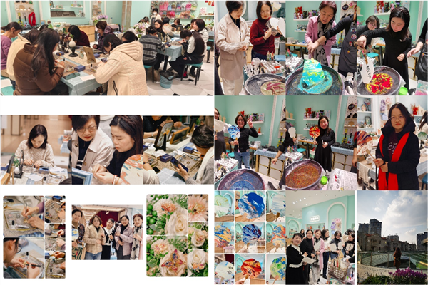 女社员们聆听了盛于唐宋的中国传统装饰工艺之一--“螺钿工艺”的介绍,并亲身体验制作螺钿胸针。此外,女社员们还学习制作了非遗漆扇。螺钿和漆扇都列入了非物质文化遗产保护名录,是中华传统文化的重要组成部分,女社员们深感保护与传承传统文化的重要意义。