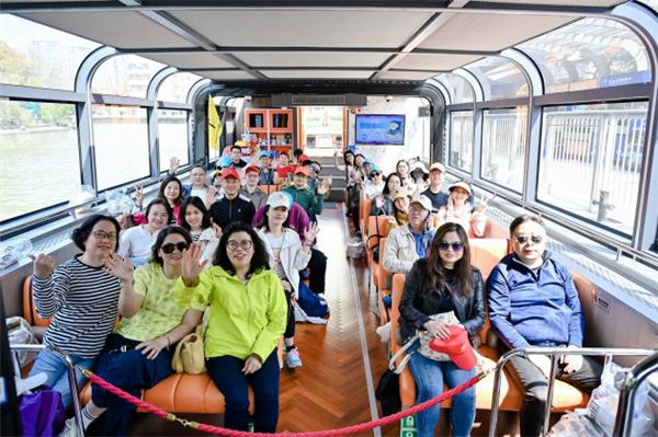 下午,悠游苏州河游船之旅徐徐展开,从“工业锈带”到“生活秀带”的转型之美在社员眼前缓缓铺陈。天安千树艺术曲面与福新面粉厂在隔了时空的两岸对话,救火会钟楼的巴洛克尖顶与现代楼宇的玻璃幕墙相映成趣。沪西工人运动的激昂岁月、中山公园地下党的红色奋斗史,生生不息,一脉相承,汇成统一战线的精神血脉,激发出社员们心中“爱国、民主、科学”的使命担当。