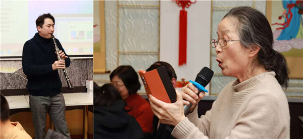 最后,社员冯陈陈和赵霞分别为大家表演了单簧管演奏和独唱“步步高”,社员倪洪珍、赵霞和郑志表演了京剧“智斗”,精彩的表演受到热烈鼓掌和喝彩。